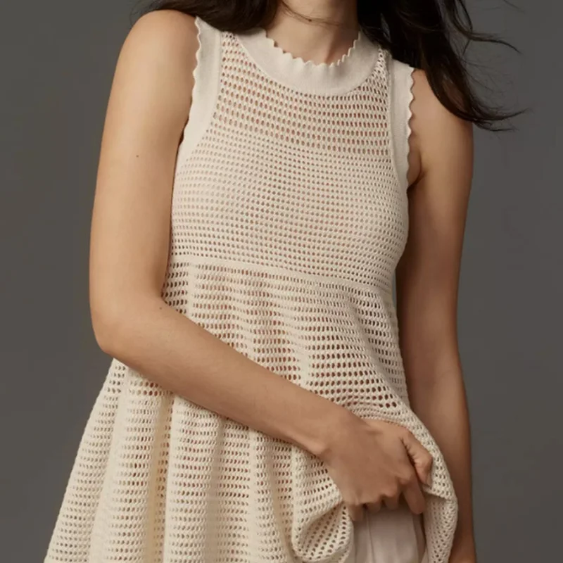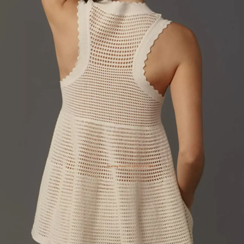 Women's Summer XS Size Double-Layer Anti-Static Cut Front Sleeveless Knitwear Dress Casual Jumpsuit Skirt Vest Chiffon Natural